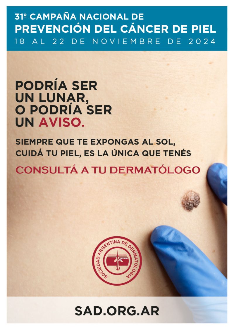 Hace 31 años, la acción comenzó como la “Semana del Lunar” en el Servicio de Dermatología del Hospital de Clínicas José de San Martín. Desde entonces, cada año, la tercer semana del mes de noviembre se realiza con el objetivo de educar y concientizar a la población acerca de los cuidados que debemos tener frente a la radiación ultravioleta (como la del sol o de las camas solares) para evitar el daño acumulativo que nos produce. El éxito, a través de los años, hizo que se replicara en todo el país y se convirtiéndose en lo que hoy conocemos como la Semana de Prevención del Cáncer de Piel.